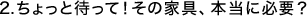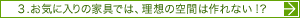 コンセプトができたらどんな家具を入れるか考えましょう。 え?入れる家具は決まっている?いえいえ、それが意外とそうでもないんです。 たとえば、リビングで読書をしたいのにライトスタンドを忘れていたり、食器棚を買ったけど家電を置く場所を考えていなかったり、すっきりしたリビングをめざしていたのに、キャビネットがなくてモノがしまえなかったり。 必要な家具を決めるために、お部屋の各エリアで、どんなことをするのか、目的をはっきりさせておきましょう。具体的な活動が書き出してあれば、家具の必要性も明確になります。 「なんとなく」病や「とりあえず」病から、早く脱出しましょう。 お気に入りが必ず見つかる新スタイルのインテリア選び STYLICS